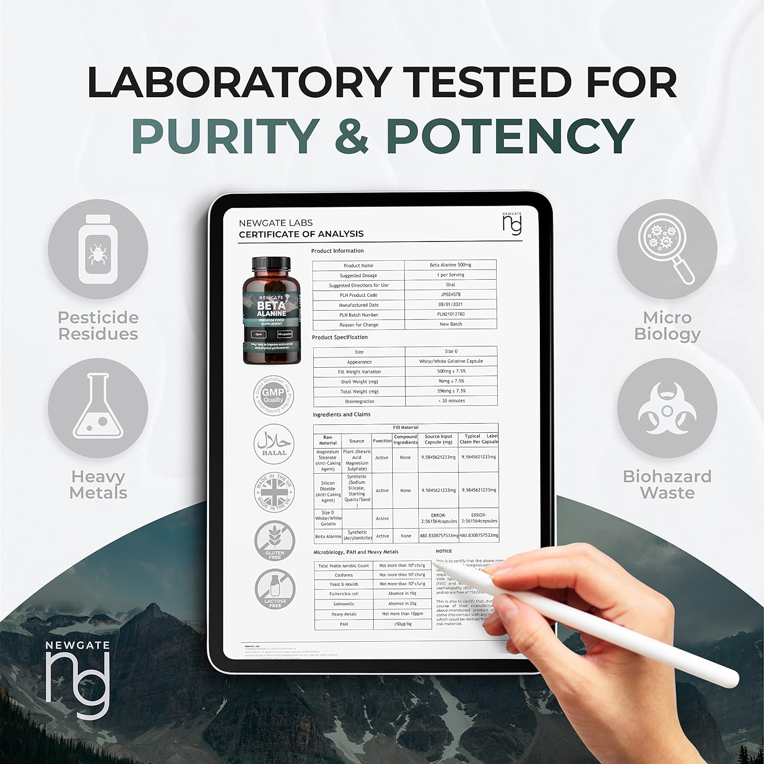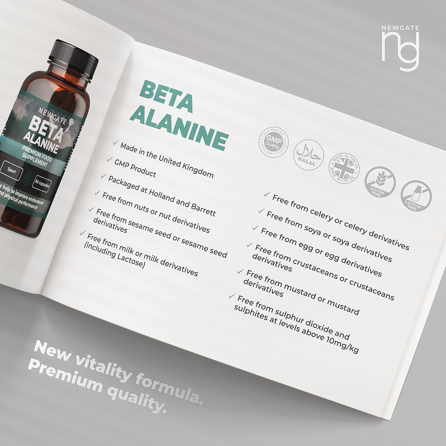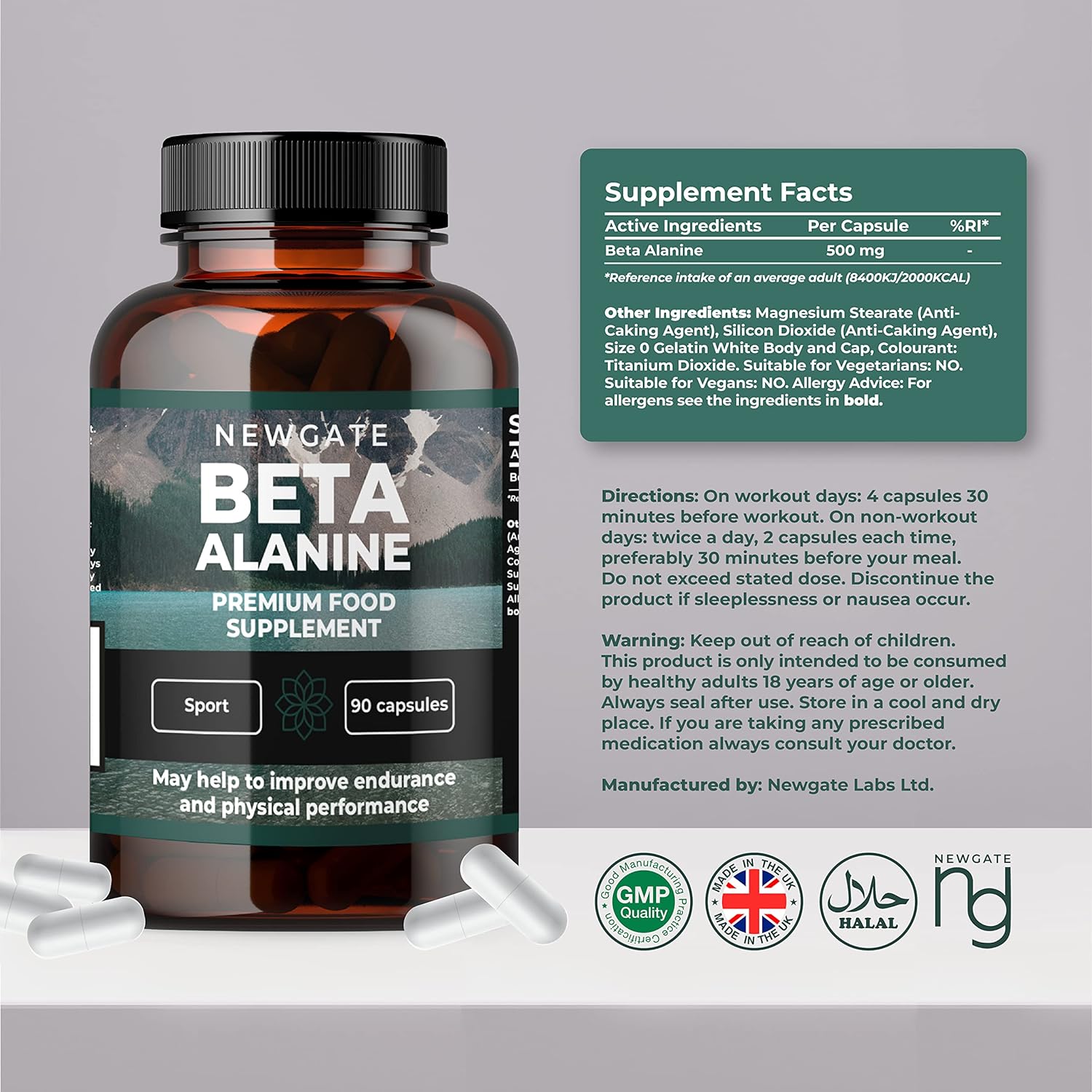 Newgate Labs – Beta Alanine 500mg for Men and Women – 90 Capsules – Preworkout Nutritional Supplement – Energy & Muscle – Halal – Made in The UK