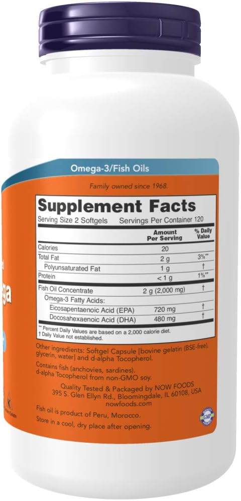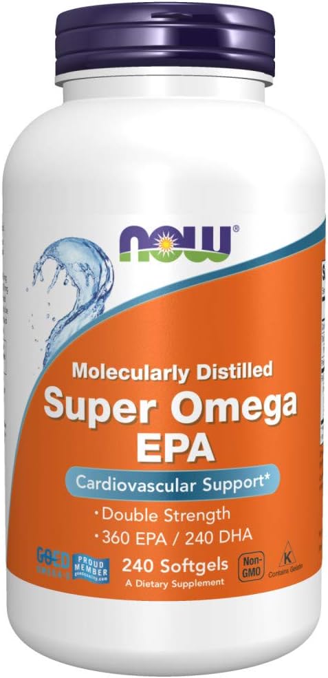 NOW Supplements, Super Omega EPA, 360 EPA / 240 DHA, Molecularly Distilled, Cardiovascular Support*, 240 Softgels