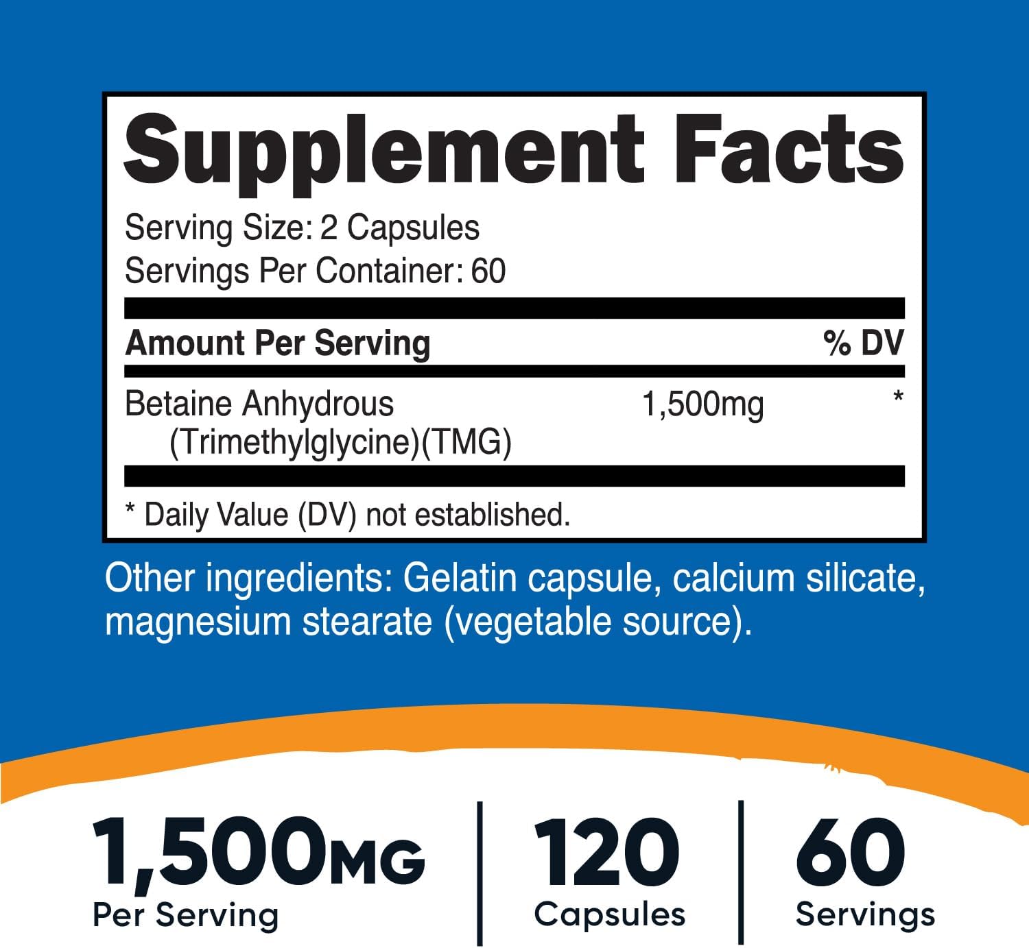 750mg of Betaine Anhydrous Per Capsule, 1500mg Per Serving