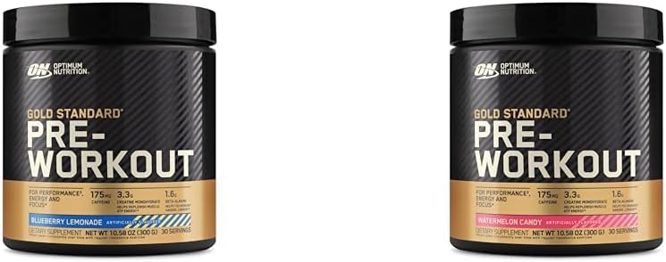 Optimum Nutrition Gold Standard Pre-Workout with Creatine, Beta-Alanine, and Caffeine, Blueberry Lemonade and Watermelon Candy, 30 Servings Each