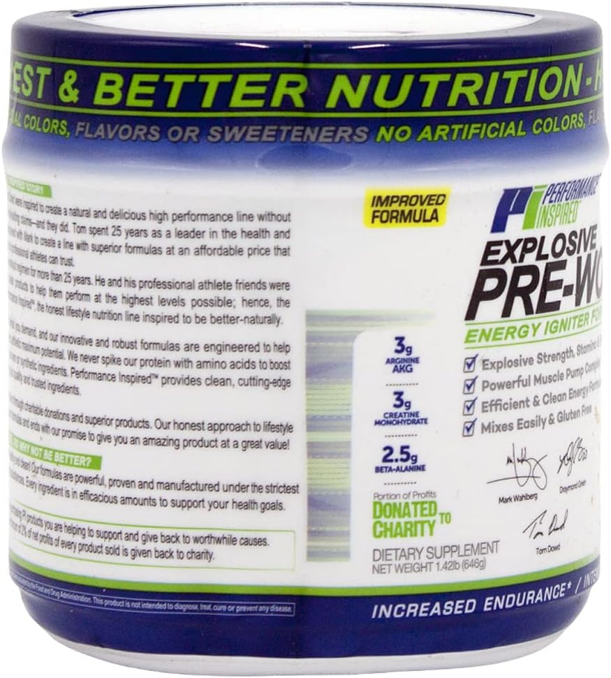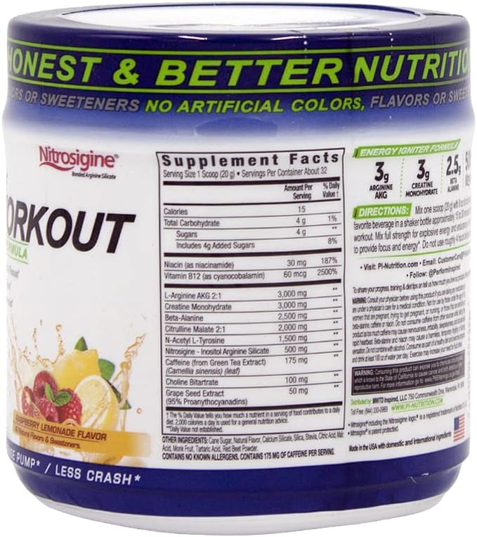 Performance Inspired Nutrition Pre-Workout Powder – All Natural – G-Free & Vegan Formula – Contains Citrulline – Nitrosigine – Green Tea – Arginine – Beta Alanine – Raspberry Lemonade – 23.84 Ounce